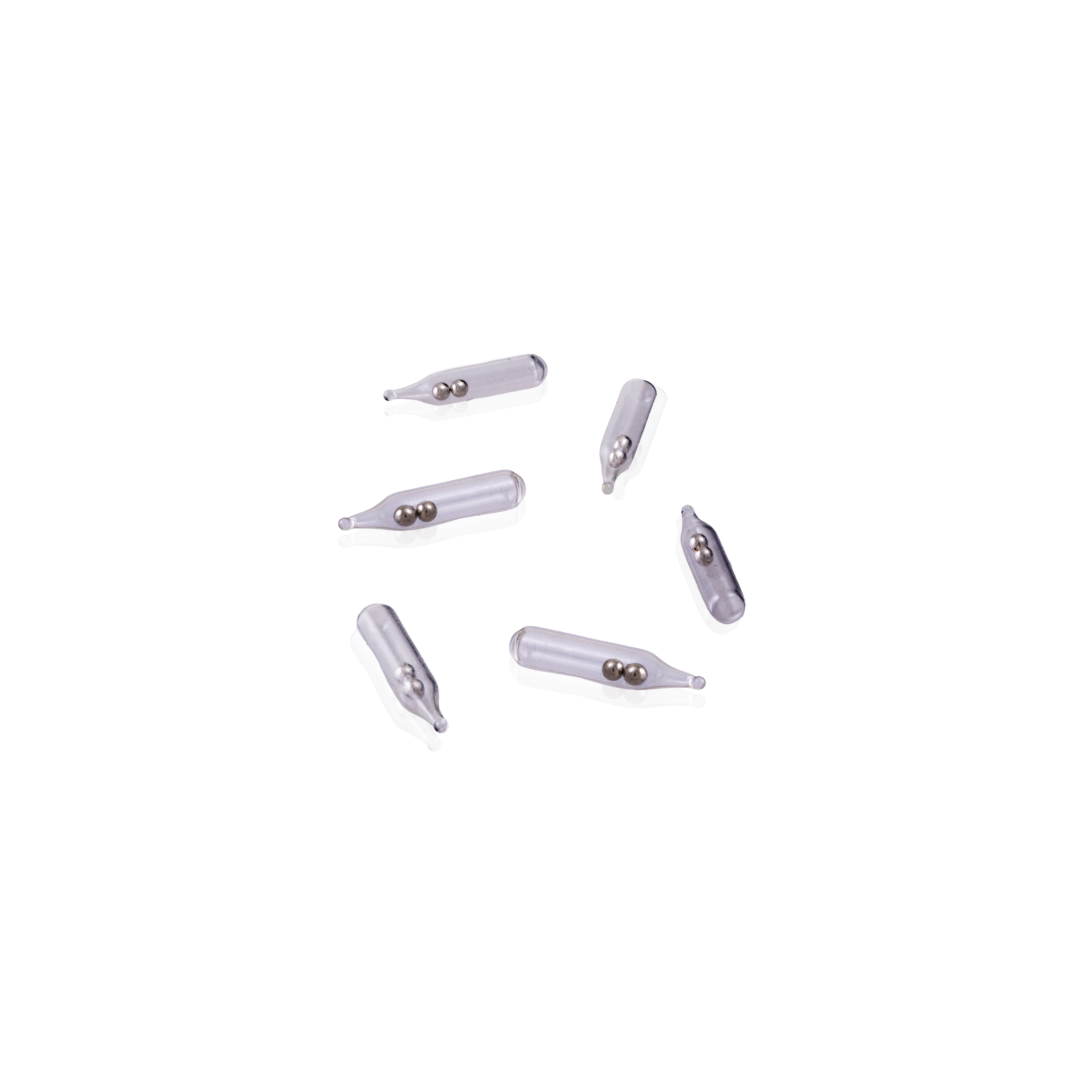 Rasselkammare i pyrex glas med två stålkulor Ger ett klart och ljust rassel och aktiveras av den minsta rörelse. 12 mm - 10 pack