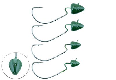 SZ Offset is a weedless jig hook with a conically shaped head mounted on an offset hook that easily moves between grass and vegetation.